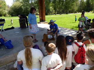 The library also provided a picnic lunch for everyone - pizza and fruit. We had the daycare kids with us, too. It was a good way to spend a morning.