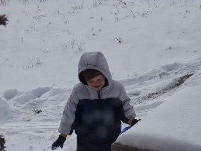 We had a pretty big snowstorm last night, so there was plenty of snow for sledding today, which the boys were thrilled about. I didn't let the two year old out though because he was sick several times last night. I think he's better now, but still not back to his energetic self yet.