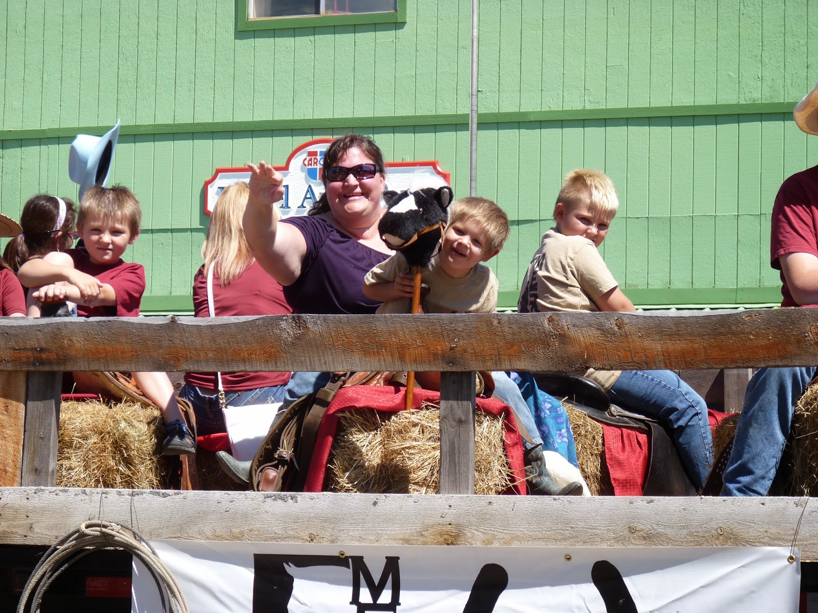 It's a huge parade. Our ten year old was on the 4H float with his best friend, riding a chicken.